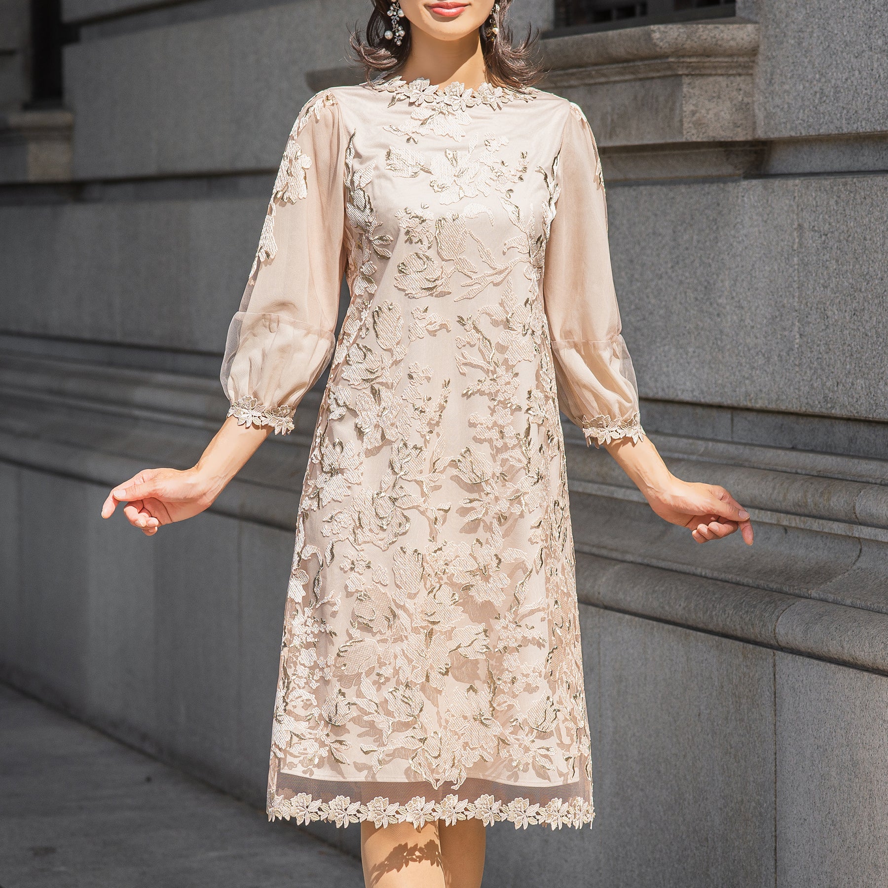 フラワーモチーフの繊細な刺しゅうに